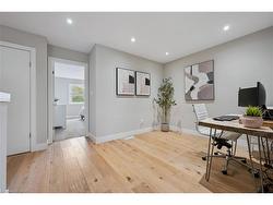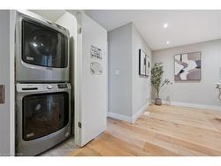 Welcome to #83–60 Arkell Road, an exceptional modern townhome tucked within an exclusive, private enclave of just a handful of homes. Backing onto a dense forest, this home offers rare privacy and a natural backdrop that feels miles away from city life—yet it’s ideally located in Guelph’s desirable South End, close to top-rated schools, public transit, and every amenity imaginable. With over 2,400 sq ft of living space, including a walk-out lower level, this home features 3 bedrooms and 3.5 bathrooms, plus a den/home office on the second floor. This unit is highly upgraded, with luxury vinyl plank flooring, LED pot lights, and stone surfaces throughout. The open-concept main floor is perfect for entertaining, with a spacious dining and living area that walks out to a private deck overlooking the forest. The chef-inspired kitchen features full-height cabinetry, high-end stainless steel appliances, and a quartz waterfall island that anchors the space. The upper landing includes a convenient laundry closet and a flex space that's ideal for an office, workout area, or reading nook. The primary suite enjoys a dedicated ensuite with a glass-enclosed shower and rain shower head, while two additional bedrooms share a stylish 4-piece bathroom. The finished walk-out basement provides even more living space with a full bathroom and a large recreation room that opens to a covered patio surrounded by nature. The cherry on top? This unit comes with a rare third parking space! This is the ideal home for a stylish couple, modern family, or investor who is looking to attract a high quality tenant.