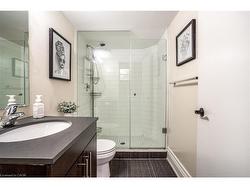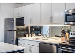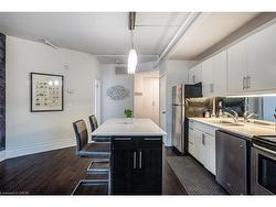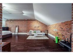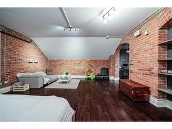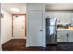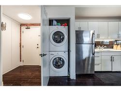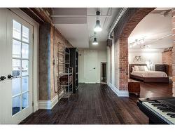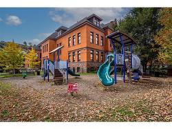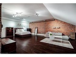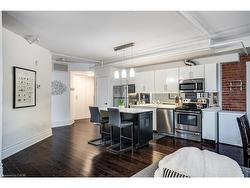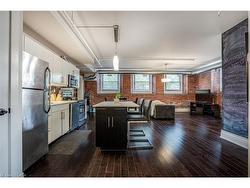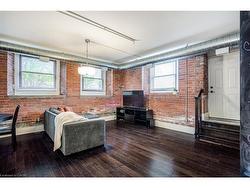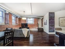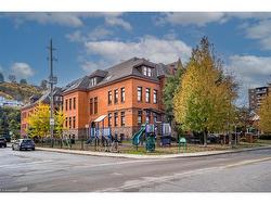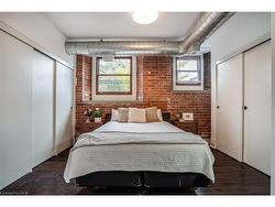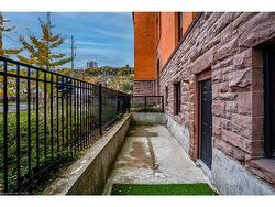Discover a truly distinctive opportunity at the historic Stinson Lofts, where old-world character and modern comfort converge. This rare main-floor corner unit offers exceptional value for its generous square footage, highlighted by a remarkable 28' x 12' private patio with sweeping views of the community playground and the lush Hamilton escarpment. Inside, soaring ceilings, exposed brick walls, and rich hardwood floors preserve the timeless charm of the 1894 Stinson School, while an airy open-concept design provides a bright and inviting flow. The stylish kitchen features quartz counters with a breakfast bar, stainless steel appliances, and in-suite laundry, seamlessly opening to spacious living and dining areas ideal for entertaining. This unique layout features 2 primary suites, the first with dual closets and a modern three-piece bath. The second private suite has it's own entrance off the dining area through french doors, with a large versatile accessway that is perfect for an office or extra storage. Believed to have once been the kindergarten classrooms of the original school, this spacious suite includes built-in shelving and a fall bathroom. It's time to move into this one-of-a-kind residence that offers a rare blend of heritage elegance, modern functionality, and unbeatable value. Includes one exclusive parking spot, P21.
