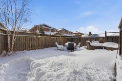 Welcome home to 115 Benziger Lane, a beautiful 3-bedroom, 2-storey freehold townhome nestled in the heart of Winona-where comfort, function, and location come together effortlessly. The main floor features a bright, open-concept layout ideal for both everyday living and entertaining. The stunning kitchen features modern white cabinetry, stone countertops, and a breakfast bar, flowing seamlessly into the living space and out to the rear yard. An additional bonus room on the main level provides flexible space-perfect for a home office, playroom, or whatever suits your lifestyle. A convenient man door through the garage provides direct access to the rear yard, making lawn maintenance a breeze. Upstairs, you'll find three generously sized bedrooms, convenient upper-level laundry, and a well-appointed main bath designed for modern family living. The mostly finished basement adds valuable bonus space, ideal for a rec room, home gym, or media area. Step outside to a fully fenced rear yard complete with multi-level pressure-treated decking, perfect for summer gatherings and outdoor entertaining. Located close to schools, parks, shopping, and with easy highway access, this is a true turnkey opportunity in one of Winona's most family-friendly neighbourhoods.