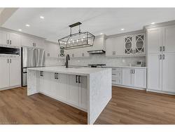 Better Than New Build! Completely Renovated 4 Bed, 3.5 Bath Home on Premium LotWelcome to this fully updated, move-in-ready home located on a prestigious 62' x 107' lot. Featuring 4 spacious bedrooms and 3.5 bathrooms, this property offers over 3600sq. feet of finished living space, including a professionally finished basement with in-law suite potential.The main level boasts a formal living room, separate family room, and a stunning open-concept kitchen and dining area—perfect for entertaining. The custom kitchen includes a large center island, new cabinetry, and premium finishes.The basement offers a second kitchen, large family room, full bathroom, and a rec room that can serve as a 5th bedroom, making it ideal for extended family or guests.Additional highlights:Double car garage with inside entry, Tesla EV charger, and commercial-grade epoxy floorAll new energy-efficient windowsNew 25-year shinglesFully renovated bathroomsNew oak staircase with wrought iron balustersAll new interior/exterior doorsSmart Chamberlain garage door openersProfessionally painted interiorNew high-end blindsLandscaped yard with underground gutter drainagePrime location just minutes to the QEW, schools, shopping, and all amenities.This home shows like a model—book your private showing today!