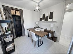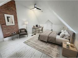 Welcome home to this elegant Victorian-style residence at 164 Catherine Street North—where timeless character meets modern comfort. This beautifully designed home features a spacious main floor with a stunning kitchen showcasing white subway tile with dark grout, dark cabinetry, stainless steel appliances, and direct access to a large backyard, perfect for entertaining.The living area highlights exposed brick and can be closed off from the generous dining room for added privacy. Upstairs offers three spacious bedrooms, including a large primary with exposed brick and a private balcony. The second bedroom is ideal for a home office, with an additional bedroom on the same level.This floor also features two beautifully finished bathrooms—one with a relaxing soaker tub and the other with an oversized tiled walk-in shower—plus convenient bedroom-level laundry.The top floor adds flexible living space that can serve as a private retreat, second living area, or dedicated home office. Throughout the home, black accents contrast elegantly with crisp white walls and flooring. Additional features include front parking and basement storage.A truly special Victorian-style home offering character, flexibility, and contemporary living in a sought-after location.Listed at $2,500 plus utilities.
