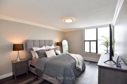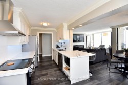 Welcome to your new address! Perched on the 17th floor in one of Hamilton's finest condo buildings, you'll find unit 1707, boasting 3 Bedrooms, 2 Full Baths, 1,265 sq ft of impeccably updated luxury, all the while highlighting a terrific walk score of 97! One look and you'll be smitten! Features include: Corner unit, with Open-Concept Layout, perfect for entertaining; Central Heating & Air Conditioning (Heat Pump 2021); Living Room with ambience-enhancing Fireplace; Dining Room with chic accent wall; modern Kitchen featuring a Breakfast Bar, Quartz countertops and Stainless-Steel Appliances; Luxury vinyl flooring throughout; Elegant Crown Moulding; remote controlled Blinds, and more! Did I mention the stunning north-west views? Enjoy a beverage on your open balcony while taking in a spectacular sunset, and a bird's eye view of Hamilton's West Harbour! All windows are scheduled to be replaced in March of 2026.In-suite Laundry, underground Parking and Locker too! Located minutes to Downtown, TD Coliseum, Restaurants, Shopping, Parks and more. Put this "move in ready" unit on your "must see" list today!