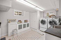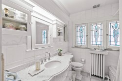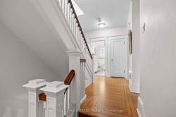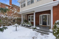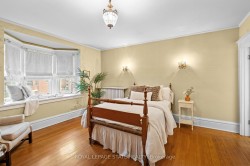 This stately 2.5-stry residence sits on a mature 46' x 85.33' lot in Hamilton's prestigious Durand neighbourhood. Showcasing timeless curb appeal, the front walkway leads to a covered porch framed by Doric columns & an entry door w/ wrought-iron grillwork. Inside, a grand foyer w/ crown moulding, a sweeping staircase & French doors introduces elegant principal rms. The formal liv rm feat a gas FP, an intricate mantle w/ hidden side cabinet, & windows overlooking both gardens. The adjoining din rm impresses w/ built-in cabinetry, leaded stained glass, and rich millwork throughout. The kitchen is a showpiece, featuring heated limestone floors, custom cabinetry w/ beveled glass, marble counters, undercab lighting, pantry, & premium S/S appliances incl a Viking gas range, Sub-Zero fridge, & Miele d/w. Surrounded by windows, it opens to a covered porch w/ a Phantom screen, perfect for indoor-outdoor living. A handy mudroom w/ dbl mirrored closet completes the main lvl. Heading up the main staircase, a landing of stained glass welcomes you to the 2nd level, feat a 25.9' x 13' primary suite w/ sitting area, dual closets, & access to a bright den/sunroom (heated flrs). 2 add'l bdrms - one w/ a bay window & ensuite, the other with garden views - plus a 4-pc bath w/ a jetted tub, stained glass, & hand-painted murals complete this lvl. The 3rd lvl offers a private bdrm retreat w/ a 3-pc ensuite, skylights, gas FP, storage, & cozy sitting nooks. The lower lvl adds laundry w/ custom cabinetry, a 2-pc bath, storage & workshop space. Outside, enjoy a private yard w/ a fountain, covered composite porch, retractable awning, gas BBQ hookup, detached garage + surfaced parking for 2 & security lighting. Add feat incl: hardwood flrs, custom window coverings, c/air, HEPA air purifier, a security sys & more. Walkable to the Locke St cafés, boutiques, art galleries, hospitals, GO Transit, parks & trails - Durand offers historic character & an unmatched lifestyle of quiet sophistication.