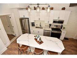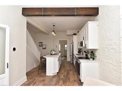 Welcome to this beautifully updated freehold semi, perfectly situated between Locke Street and trendy Hess Village. Why pay condo fees when you can own a stylish, move-in ready home in one of Hamilton’s most walkable neighbourhoods? The main level features a chef-inspired kitchen complete with a large island and stainless steel appliances, ideal for both cooking and entertaining. Two living areas provide flexible space for relaxing and hosting, while the walkout to a private deck and courtyard creates the perfect outdoor retreat. Upstairs, you’ll find two bedrooms with unique “magic” windows that include built-in screens and blinds, along with a wall-to-wall closet in the primary for ample storage. The spa-style bathroom features a charming clawfoot tub, and the convenience of upstairs laundry. The lower level offers generous storage space and a workshop, ideal for hobbies or projects.This home is walkable, stylish, and ready to move in-truly checking all the boxes. Ample street parking and permit parking are available, and the location provides quick access for commuters.