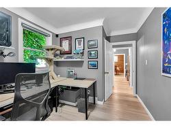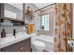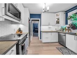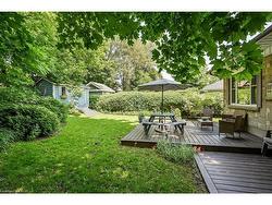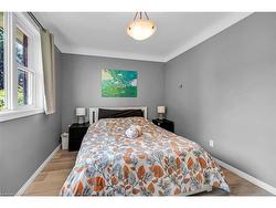 Welcome to this beautifully maintained bungalow, nestled on a peaceful cul-de-sac in the sought-after Rosedale area. Backing directly onto green space, this home offers a true move-in ready experience. The main floor boasts an updated kitchen, a comfortable living room with a gas fireplace, three bedrooms, and a bathroom featuring a jetted tub. The lower level provides even more living space with a large recreation room, convenient laundry facilities, a three-piece bathroom, and a practical mudroom with direct entry from the attached garage. This home has been thoughtfully updated with a updated kitchen, updated bathroom fixtures, durable LVT flooring throughout the main level, and a new furnace and hot water heater installed in 2021. Further enhancements include lead pipe replacement, electrical panel, humidifier, updated appliances, a smart thermostat, new lighting and window coverings, and the added security of cameras and an alarm system. Step outside to enjoy the tranquility of the private backyard, complete with a two-tier deck for relaxing and admiring the beautiful gardens filled with native plants. You'll also find a custom-built large shed and a mini shed, providing ample storage. The location offers excellent convenience, with easy access to all essential amenities and quick routes to the Red Hill Parkway and the QEW.