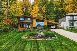 A true artists home rich in craftsmanship, history and heart. Perfectly positioned along the Niagara Escarpment with direct access to the Bruce Trail, this custom built home, one owner sprawling side split is a rare find. Set on a 70 ft x 244 lot, it has been celebrated with 24 Trillium Awards & 6 Prestigious Pink Awards for its exceptional landscaping & design, a testament to the pride of ownership found throughout. Enjoy unobstructed views of Lake Ontario & the Toronto skyline framed by mature trees & vibrant perennials, featuring a pond filled with golden orfes, goldfish, and blooming water lilies. Across the street a community park with playground & basketball court adds to the settings appeal, while GO Transit & QEW access are just minutes away, offering easy connectivity to surrounding communities. Inside, artistry meets function with thoughtful touches & custom details. The gourmet teak kitchen boasts granite counters & built in Miele & Gaggenau appliances, perfect for those who value fine craftsmanship. Warm living spaces with a fireplace, intricate carved woodwork & timeless architectural detail, creating a home as comfortable as it is inspiring. Recent updates include a tarmac roof (2017), air conditioning (2023), furnace (2011), washer and dryer (2023). With parking for nine & a full workshop with hot & cold running water, this extraordinary home blends artistry, nature & convenience in perfect harmony. (id:7525)