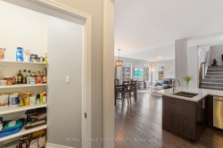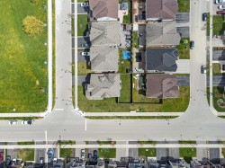 Welcome to this beautifully maintained & charming four-bedroom, three-bathroom home, ideally situated on a spacious corner lot, highlighted by a classic wrap-around porch. From the moment you arrive, the striking double front-door entry sets the tone for the warm & inviting interior. Inside, a bright open-concept main level flows seamlessly, creating a cohesive & functional layout ideal for modern family living. Neutrally painted throughout, the home features stylish laminate flooring across the main level & updated carpet installed in 2025 on the upper floor, adding comfort & continuity throughout. A versatile dining room provides flexibility to serve as a secondary family room or play area, while a dedicated office provides the perfect space for working from home. The heart of the home is the sleek, contemporary kitchen, complete with quartz countertops(2025), a walk-in pantry, & a built-in coffee nook. Large sliding glass doors extend the living space outdoors to a spacious, unspoiled backyard-a blank canvas with endless potential for entertaining or gardening. Interior access to the two-car garage from the kitchen adds everyday convenience. Upstairs, 4 bedrooms feature comfort & privacy for the entire family. The spacious primary bedroom is a true retreat, featuring two walk-in closets & a well-appointed ensuite with a soaker tub, double sinks, & a separate shower. The 1,200+ sq. ft. unfinished bsmt provides outstanding future potential & is already equipped with an entertainment system including a projector, screen, & sound system. Additional valuable features throughout the home include a built in central vacuum, an air exchanger, & a wired-in alarm system, providing both comfort & peace of mind. Ideally located close to schools, parks, & shopping, this exceptional home combines thoughtful upgrades, functional design, & a prime location. This is a fantastic opportunity to own a truly move-in-ready family home in one of the area's most sought-after communities.