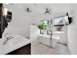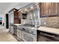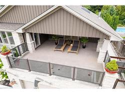 elcome to this custom-built luxury residence on prestigious Mountain Brow Blvd with breathtaking views of the Niagara Escarpment and Lake Ontario. Originally built in 1957, the home was completely rebuilt in 2012, retaining only portions of the original foundation. Nearly every component — including framing, mechanical systems, roofing, and interior finishes — was replaced or upgraded, offering the comfort and efficiency of a modern build with the charm of its origins. The craftsman-inspired façade, clad in Georgian Bay limestone and board-and-batten, makes a striking first impression. A limestone-paved circular driveway enhances the curb appeal, along with an EV charging station, path lighting, and mature perennial gardens with irrigation. Inside, a cathedral ceiling and floating staircase set the tone in the grand foyer. The gourmet kitchen features granite counters, high-end appliances, cherry wood cabinetry, and a spacious walk-in pantry. It flows into an expansive dining room with a built-in fireplace and escarpment views — ideal for intimate dinners or large gatherings. Off the dining room, a bright study with heated floors and an indoor/outdoor gas fireplace leads to a four-season sunroom with serene backyard views. The backyard oasis includes a heated saltwater pool, retractable awnings, a 14’ x 20’ covered outdoor kitchen with gas fireplace, and a private annex. A double-sized family room with radiant heat and gas fireplace sits just off the kitchen, perfect for entertaining. Upstairs offers four spacious bedrooms, three bathrooms, and a central laundry room. The primary suite is a true retreat with a five-piece ensuite, walk-in closet, gas fireplace, and balcony with panoramic views. The 37’ x 20’ backyard annex provides additional privacy and includes a guest suite with fireplace, in-floor heating, 3- piece bath, and gym. Every inch of this residence reflects luxury, comfort, and functionality — a truly exceptional home.