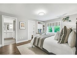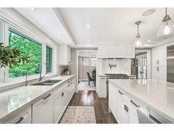 Welcome to unparalleled luxury and sophistication. With meticulous attention to detail throughout, this is an extraordinary opportunity for thediscerning buyer who values precision, quality & timeless design. Nestled in one of the city’s most prestigious enclaves & backing onto the RoyalBotanical Gardens Forest, this 5 bedroom, 5 bathroom residence offers over 4,100sqft of refined living where natural beauty meets exceptionalcraftsmanship. Every element has been thoughtfully curated from hand-selected finishes to custom millwork. The main floor features a gourmetchef's kitchen outfitted with Wolf, Sub-Zero, and Miele appliances, generous prep space, a large island with seating, & an open layout that flowsseamlessly into the living and dining area all framed by enchanting forest views. Additional main floor highlights include an executive office witha separate entrance to a covered porch, a spacious mudroom with heated floors, custom cabinetry & direct access from the tandem double-cargarage. Upstairs, the serene primary suite is a true retreat, complete with a gas fireplace, spa-inspired ensuite with heated floors & a walk-incloset. A second-floor laundry room with heated floors, along with heated flooring in every bathroom, adds comfort & convenience throughout.The lower level is equally impressive, featuring a guest suite, gym, rec/media room, kitchenette, rough-in for laundry & a separate entrance allenhanced with heated flooring. Step outside & enjoy thoughtfully designed outdoor living spaces that invite you to unwind & connect with nature.Multiple seating areas & professionally landscaped gardens provide the perfect setting for al fresco dining, morning coffee, or evening gatheringsall set against the peaceful backdrop of the forest. This is a rare opportunity to experience true tranquility and connection to nature withoutcompromising access to the city’s finest amenities.
