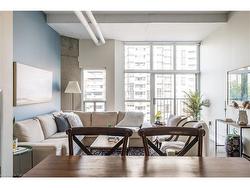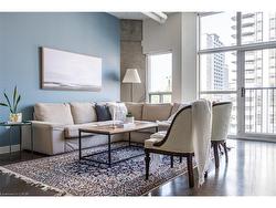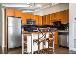 Experience urban chic living at the Core Lofts! This super cool condo boasts a modern industrial vibe with polished concrete floors, soaring 10+ft ceilings with exposed pipes and beams, glass bock accents and floor-to-ceiling windows for a ton of natural light. This 834 sqft unit features 1 bedroom plus a den that can also serve as a home office or an additional bedroom, a 4pc bath, convenient in-suite laundry and an open-concept living and dining area. The kitchen features stainless steel appliances with ample cupboards and storage and the spacious open living area is perfect for entertaining with a Juliette balcony to enjoy west-facing sunset views. Residents enjoy premium building amenities, including a gym, party room, guest suites, and rooftop patio with BBQ perfect for taking in breathtaking city skyline views. The unit include an underground parking spot and convenient lockers on 8th-floor. This sought-after building in a prime downtown location is close to St. Joseph, McMaster and all area hospitals + the David Braley Medicine Centre making it ideal for medical professionals. Within walking distance to the new TD Coliseum, the Convention Centre, the Downtown Core, restaurants, shopping and amenities, Art Gallery of Hamilton, Central Library, Farmers’ Market and just minutes to trendy Locke St S. Public transit direct to McMaster University, Go-transit, and easy access to the 403 make this cool and convenient condo at the Core Lofts the perfect choice to call home! RSA