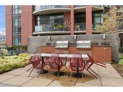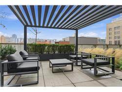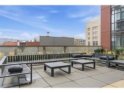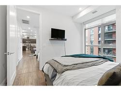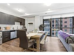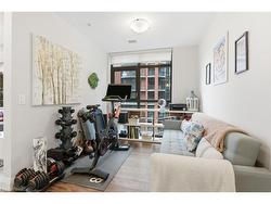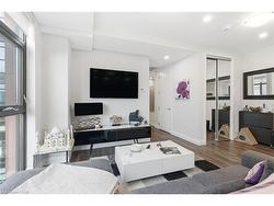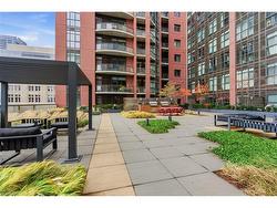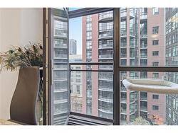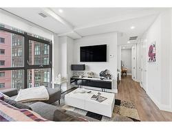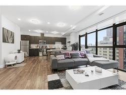 Bright, refined, and effortlessly contemporary - Suite 916 at the iconic Royal Connaught, a beautifully preserved piece of Hamilton's history in the heart of downtown, offers an exceptional standard of urban living. This nearly 900 sq. ft 1-bedroom + den residence features 9' ceilings and expansive floor to ceiling windows that span the full width of the suite, immersing the home in natural light and framing sweeping southeast views of the courtyard, city skyline, and escarpment. Showcasing one of the building's most desirable layouts, the suite includes extra height kitchen cabinetry with lower pull-outs, granite countertops, pot lights, solar-charged motorized blinds, and a walk-in closet with custom organizers. The bathroom has also been beautifully upgraded with granite counters and premium porcelain tile. Thoughtful enhancements throughout elevate both comfort and style. The spacious open den provides exceptional versatility - ideal as a home office, guest room, or potential second bedroom. Residents enjoy access to outstanding amenities, including a rooftop terrace perfect for sunsets and summer evenings, concierge service, a fully equipped fitness centre, media room and elegant party room. This unit also comes with an owned locker and an underground parking spot. Step outside and you're moments from Hamilton's finest cafes, shops, art galleries, and restaurants, along with the vibrant energy of James Street. Hospital services, transit and GO station connections are all within easy reach. If you're seeking a seamless blend of luxury, history, and urban convenience, this spectacular suite at the Royal Connaught might just be your perfect match.