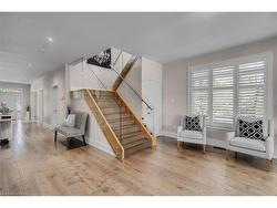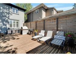 Welcome to 958 Beach Blvd! Stunning, custom built, 3 bed 3 bath home situated on a large 170 deep lot located in the desirable Hamilton Beach community. Bright and spacious with a functional, open concept floor plan. Located just steps to the waterfront trail & sandy beach. Stylish kitchen with centre island, granite counters, stainless steel appliances, custom cabinetry with under valence lighting. Pot lights, 9 ceilings, california shutters and engineered hardwood throughout. Main floor office or den area off the foyer. Laundry room with cabinetry & laundry sink on the main floor. Sliding doors off dining area to back deck to cabana with fireplace & TV. Off the back deck there is a massive, fenced backyard. Glass railing off living area leads to second floor sitting room, with sliding door walk out to 363 sq ft terrace with water views. Primary bedroom offers 5pc ensuite, walk-in closet and private 94 sq ft balcony also with water views. Second & third bedrooms are spacious with large closets. Watch the sun rise from your balcony, and relax in the evening with the sunset out back. Close proximity to downtown Burlington, public transit, waterfront trail, parks, amenities & quick highway access.