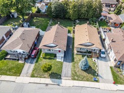 Welcome to this charming 3-bdrm, 2-bath bungalow in Hamiltons highly sought-after Inch Park neighbourhood. Situated on a 40' x 113' lot on the Hamilton Mountain, this home offers curb appeal with its mainly all-brick exterior, surfaced driveway for 3+ vehicles, & a welcoming front porch. Built in '58 and lovingly maintained by the same family for over 6 decades, it is a rare opportunity to own a property with both character and pride of ownership. Step inside to find a bright and inviting main level. The foyer, complete with a storage closet, leads into a spacious living room with a sun-filled oversized bay window and recently installed broadloom. A galley-style kitchen pairs functionality with charm, while the separate dining area provides the perfect setting for family meals and gatherings. The bedroom wing offers a generous primary bedroom and two additional bedrooms, each finished with hardwood flooring. A well-appointed 4-pc bath completes this level. A bonus side exterior door provides convenient access to the lower level, offering excellent potential for a variety of purposes. The partially finished lower level features an oversized recreation room highlighted by a cozy corner gas fireplace, a den, a 3-piece bathroom with an oversized shower, a utility space, and an additional unspoiled utility room awaiting your personal touch. Notable updates include roof shingles, windows (both approx 15 years ago), and more, ensuring peace of mind for years to come. Located in Inch Park, this home enjoys one of Hamiltons most desirable and family-friendly communities. Known for its tree-lined streets, well-kept parks, and welcoming atmosphere, Inch Park offers excellent schools, quick access to the LINC and major highways, and is just minutes to downtown Hamilton, the Juravinski Hospital, and trendy shops and dining along Concession Street. With public transit and every convenience close by, this location truly balances urban accessibility with suburban charm.
