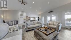 A long private driveway leads through rolling acreage to a rare, commercially zoned estate property offering a unique opportunity to operate a full-scale business onsite while enjoying luxury residential living. Situated on nearly 28 acres, this property is ideal for contractors, trades, logistics, or business owners requiring extensive storage, workspace, and privacy.The property is zoned for a contractor's yard, a designation that is increasingly difficult to secure. It features approximately 25,000 sq.ft. of outdoor storage, a 6,500 sq.ft. heated indoor garage/workshop with radiant floor heating, and substantial second-level office space, allowing for seamless business operations. Ample parking accommodates fleet vehicles, equipment, and staff while maintaining separation from the residence.A 1,200 sq.ft. one-bedroom apartment above the workshop provides ideal accommodations for a site manager, employee housing, or additional income potential.The residential component includes a custom stone bungalow offering executive living for owners or principals. The home features open-concept living, vaulted ceilings, a bright great room with walk-out to a covered lanai, and renovated main-floor bathrooms. The main level includes three bedrooms, while the finished walk-out basement adds two additional bedrooms, a large recreation area, fireplace, bar, and entertaining space.Outdoor amenities include a saltwater pool, hot tub, waterfall, and poolside bar, ideal for executive use or client entertaining. A two-level 6-car garage provides further flexibility for storage, showroom, or gym conversion. The property is equipped with radiant floor heating, central A/C, surround sound, and multiple gas fireplaces.Conveniently located west of Hwy 27 and north of Hwy 9, minutes to Schomberg, this exceptional offering delivers legal commercial zoning, turnkey infrastructure, and lifestyle appeal in one unmatched property. (id:7525)