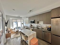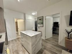 With just 5% down, your mortgage payments could be lower than what you're paying in rent! This 1 bedroom condo at Station Park offers one of the most desirable layouts in the building. You'll be pleasantly surprised upon entry by the spacious hallway, providing excellent separation before opening into a beautiful open concept living space. The unit is stylishly furnished and can be sold with all furniture included. It features a generous bedroom, an oversized bathroom, in suite laundry, and an elegant kitchen with an island that overlooks a cozy and inviting living room. Step out onto the terrace to enjoy stunning sunrise and sunset views. Residents enjoy exceptional amenities, including 24/7 concierge service, a swim spa, Peloton studio, fully equipped gym, bowling alley, party room with wet bar and private dining area, and an outdoor terrace with firepits and BBQs. A dedicated pet spa station adds extra convenience. Underground parking is available for an additional fee. HEAT & INTERNET included in condo fees! Ideally located just minutes from Downtown Kitchener, Uptown Waterloo, the LRT station, Google, and more. This is modern living at its finest.