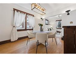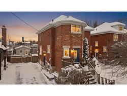 Set on one of Kitchener’s most picturesque and peaceful streets, this classic red brick detached home blends timeless character with thoughtful updates in the heart of the city. Lovingly maintained, this home features rich original woodwork, hardwoods and trim to set the tone of this beautiful century home. Beginning with a spacious front foyer that is perfect for welcoming guests, family and friends, opening up into a bright living room and formal dining room with large windows and stunning wood trim. The large eat-in kitchen offers excellent functionality, two pantries and easy access to the backyard, creating a seamless indoor-outdoor flow for family life and entertaining. Upstairs, you’ll find three well-sized bedrooms, a full bathroom, and the rare convenience of upper-level laundry. Step out onto the updated balcony featuring a DecTec walkable membrane and enjoy serene, unobstructed views overlooking the backyard which offers plenty of grass area for kids to play and beautiful gardens. Additional highlights include a walk-up attic offering excellent storage or future potential, and a cozy finished basement (2018) ideal for movie nights, complete with a full bathroom. A large private driveway adds everyday convenience. With recent updates including windows (2016), furnace (2017), AC (2017), EV plug level 2 for EV charger, spray foamed attic & eat-in kitchen floor, all you need to do is move in! Located in a charming, family-friendly neighbourhood just minutes to the Kitchener Market, Aud, highway, parks, schools, and downtown amenities, this home offers character, space, and an exceptional setting. A truly special home in a fantastic location.