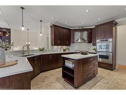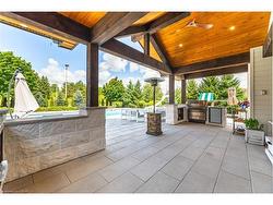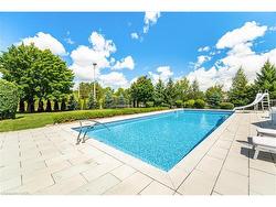 Discover the elegance and sophistication of 86 Canters Close in Kitchener's exclusive Hidden Valley. This grand estate spans nearly an acre and features a custom-built executive bungalow with a palatial 6,458 square feet of living space, a stunning 20' x 50' in-ground saltwater pool, along with a stylish pool-house cabana. The residence is set atop a hillside, on a tranquil court with views of the Grand River Valley. Walking up to the regal front entrance, residents will be greeted by an expansive layout flooded with natural light, soaring tray ceilings and luxury finishes. With generous formal spaces that seamlessly flow into and out of the home, this home is designed for entertaining, dinner parties, and family gatherings. A private primary wing includes a serene ensuite spa and a walkout to the recently updated and massive TREX deck. 3 other bedrooms on the main floor are paired with 2 further bathrooms. The lower level features an art studio with a walkout, two additional bedrooms, a 4-piece bathroom, and a fully stocked kitchen and living room. Hosting family or friends for extended visits? Looking for a multi-generational home? 86 Canters Close couldn't be a better fit. From the lower level, walk out to a gorgeous stone patio that encircles the sparkling pool and flows into the chic poolside cabana (complete with a bathroom and outdoor shower). Envision sun-drenched summers, grilling in the outdoor kitchen, cooking in the pizza oven and dining al fresco. Need extra parking? The 3-car garage plus 5 parking spaces on the driveway. Mechanical features and updates include: in-floor heating on the lower level, new appliances installed in 2022, a tankless hot-water system, irrigation and landscape lighting installed in 2023, newer HVAC, and more. Efficient pool heating utilizes a heat pump and a gas heater. Hidden Valley Estates is a luxury enclave of homes in South Kitchener, with effortless access to highways 7 & 8 or 401 in minutes.