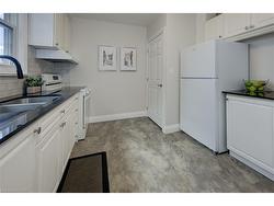 Wow! FOUR PARKING SPACES come with this delightful 2-bedroom main floor apartment, offering a harmonious mix of comfort and convenience. The interior has been freshly painted and beautifully refreshed with gleaming hardwood floors. Getting ready in the morning will be a breeze in the updated four-piece bathroom. The spacious living area is filled with natural light, creating a cozy ambiance for relaxation or hosting guests. Cook up delicious meals and enjoy them in the spacious eat-in kitchen. Two large bedrooms boast closet space and large windows allowing loads of natural light to pour in. In-unit laundry adds to the connivence of this home. Situated just a stone's throw away from the expressway, commuting is a breeze, perfect for busy professionals or families on the move. Enjoy access to nearby Bechtel and Breithaupt Park, and explore local history at Woodside National Historic Site. The Grand River is a quick walk away and makes for a great spot to take in nature. Restaurants, grocery stories, fantastic schools and loads of other amenities are all nearby. Seize this amazing opportunity to make this lovely place your own