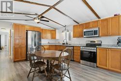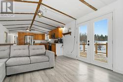 Welcome to this 2-bedroom, 1-bath bungalow tucked away in the peaceful countryside of Maberly. Set on a manageable, low-maintenance lot and surrounded by rolling hills and mature trees, this property offers a wonderful sense of privacy and tranquility. The home has been well maintained and features a spacious open concept kitchen, living and dining area, sizeable entry-way, large bathroom, 2 bedrooms and a partially finished walkout basement. Whether you're relocating to the area, a first-time buyer, downsizer, or investor, this is an excellent opportunity to own a solid home at a great value, priced under 350k. Enjoy the best of rural living while still being conveniently located and situated on a year round municipally maintained road- just under 30 minutes to Perth, 20 minutes to Sharbot Lake, and approximately 45 minutes to Carleton Place. A cozy retreat with easy access to nearby towns, lakes, trails and amenities. Recent updates include brand new back deck (2025), owned hot water heater (2023), Electric motor in the electric furnace (2021), wood stove (2020), Iron filter and water softener (2022/2023), armour stone landscaping, and a new submersible water well pump. (id:7525)