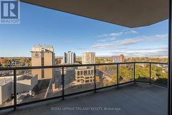 Welcome to Wellington Park Condominiums - a stunning luxury residence in the heart of downtown London, overlooking the park and city skyline. ALL UTILITIES INCLUDED IN CONDO FEES. This elegant Westminster model offers 1,596 sq. ft. of beautifully finished living space with a west-facing balcony and an open-concept layout designed for comfort and style.Inside, you'll find rich solid surface floors, crown moulding, and designer neutral tones throughout. The chef-inspired kitchen features granite countertops, a large island, premium stainless steel appliances, and a wine cooler. The spacious living and dining areas flow seamlessly for easy entertaining.The primary bedroom suite is your private retreat, complete with a dressing room with mirrored closets and a luxury ensuite featuring a glass shower, jetted tub, and heated ceramic flooring and California shutters. A separate den offers flexibility for a home office or guest room, and a dedicated laundry room adds everyday convenience.This suite includes two underground parking spaces. Condo fees cover heat, hydro, water, and air conditioning, ensuring worry-free living. Enjoy top-tier building amenities such as a fitness centre, projection room, games room, library, and guest suite, plus the assurance of an on-site building manager. Experience luxury living steps from Richmond Row shopping and dining, Victoria Park, Western University, and London's scenic nature trails. (id:7525)