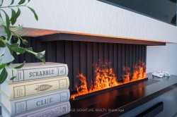 Step into this stunning 3 bed/, 4 bath freehold executive townhome in the sought-after Lakeview Village, minutes to Lake Ontario. This home combines modern design, functionality & comfort. Built in 2016, it features a foyer with a built-in shoe cabinet and tile flooring, stepping up to a beautifully upgraded main floor. The kitchen is equipped with quality stainless steel appliances, granite countertops, matte black hardware, a wainscoted center island & custom lighting. The open-concept living and dining areas feature hardwood floors, a built-in entertainment centre with a child-safe electric fireplace, dimmable potlights, custom window treatments, and a stylish feature wall. A 2-piece powder room, upgraded with modern materials, completes the main floor. Upstairs, the primary suite is bright and spacious, with a huge walk-in closet, and a luxurious 4-piece ensuite with double sinks, granite counters, custom mirrors, and a large shower. Two additional bedrooms offer custom window coverings, and access to a second-floor 4-piece bathroom. The family room provides garage access, glass sliders to the backyard with motorized blinds, a 2 piece bathroom, and a coat closet. Walk out to the backyard which is designed for entertaining with a wood pergola, large deck, artificial turf, glass railings, decorative lighting, a gas BBQ hookup & water hose hook up. The basement includes a games room, laundry with Samsung front-loading washer & dryer & ample storage. Additional features include 9-ft ceilings on the main floor, smooth ceilings throughout, a built-in alarm system, & ample visitor parking. This is a rare opportunity to own a meticulously maintained, turnkey home with luxurious finishes, functional spaces, and a private backyard in a family-friendly neighbourhood near Lake Ontario. Minutes to Port Credit, restaurants, major highways, transportation, and excellent schools. DOWNLOAD THE ATTACHED FEATURE WITH ALL THE INFORMATION ON THIS HOME, INCLUDING SCHOOLS & FLOOR PLAN