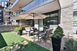 A unique and rare opportunity at the iconic and desirable Craftsman in Clarkson offering affordable luxury and ultimate convenience. Concierge, 24-hr security, a gym, yoga studio, rooftop/garden/bbqs, and lush manicured grounds. These are just a few of many privileges that the residents of The Craftsman enjoy. The Meadow Wood suite offers a generous and functional 960 Sq Ft layout with 2-bedrooms, 2-full washrooms and a showstopper 817 Sq Ft Private Terrace in the very secure and green West Courtyard. Great for someone with a green thumb and/or pet. The suite features 9' ceilings with dimmable pot lights, tasteful 5 vinyl plank flooring, an eat-in kitchen with Large Island and sink, full-sized appliances; Fisher & Paykel (31 Fridge), built-in Whirlpool Oven, Whirlpool Cooktop Range and Panasonic Microwave, backsplash and tasteful cabinetry. The primary bedroom features a large walk-in closet, stunning 3-pc ensuite bathroom and a walk-out to the terrace. Positioned on level 1, this residence offers simplicity and ease for everyday living. Well-suited for those seeking convenience, comfort, security and a connection to the outdoors. Come see for yourself why suite 155 is something truly special. (id:7525)