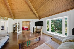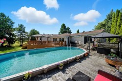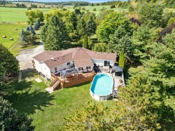 Welcome to your private paradise - an extraordinary 5-acre country retreat in rural New Tecumseth offering breathtaking panoramic views of open fields, mature trees, and the serenity of nature, all just minutes north of Highway 9. Enjoy the perfect blend of peaceful country living with convenient access to major routes just 10 minutes to Hwy 400, 7 minutes to Hwy 27, & only 30 minutes to both Toronto & Barrie. As you drive down the long, tree-lined driveway, you'll immediately feel the sense of peace & tranquility. The impressive frontage provides a grand entrance to your custom-built raised bungalow, surrounded by lush greenery and fresh air. Inside, the home boasts a massive, character-filled living room with soaring ceilings, hardwood floors, a large bay window, and a cozy wood stove that adds stunning ambiance. Walkout to the beautiful sunroom the perfect spot to soak in the natural surroundings. The open-concept kitchen features ample cabinetry and a center island, ideal for entertaining & family gatherings. The main level offers three spacious bedrooms, including two with 4-piece ensuites and private walkouts to decksone ideal for sunrise coffees, the other perfectly positioned for stunning sunset views. A versatile den adds even more flexibility to the layout. Downstairs, a separate entrance leads to a bright, above-grade basement apartment ideal for multi-generational living or rental income. It features large windows, a full kitchen, and plenty of living space. The deep, two-car garage with direct interior access adds functionality & easy access to vehicles away from the elements. The entire home has been professionally cleaned, offering a fresh, move-in-ready environment for its next owners. Step outside to your expansive entertainers deck with direct access to a sizeable above-ground pool perfect for summer BBQs under the stars. Surrounded by wide-open skies and natural beauty, this outdoor space invites you to unwind, host, and enjoy life in the country.