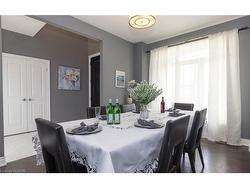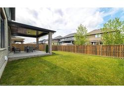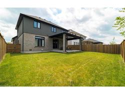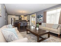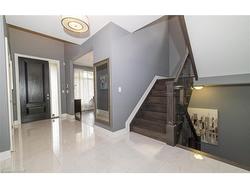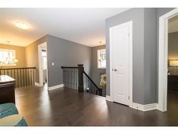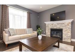 Welcome to this executive 4-bedroom, 4-bathroom detached 2-storey home, built in 2016 and located in the prestigious Fernwood Estates subdivision in Niagara Falls. Step inside to find rich, dark hardwood flooring throughout both the main and second floors, with no broadloom anywhere in the home. Nine-foot smooth ceilings and pot lights on the main level create a bright, upscale feel, while the impressive open-to-above foyer sets the tone for the rest of the home. The gourmet kitchen is a chef's dream, featuring granite countertops, a stylish backsplash, a breakfast bar, and stainless steel appliances. Porcelain tiles highlight the foyer and spacious laundry room, which also provides a walkout to the double-car garage. Upstairs, the large primary suite offers a luxurious 5-piece ensuite bath and a walk-in closet. Three additional well-sized bedrooms share a third 4-piece bathroom. The finished lower level, accessible via a separate walk-up through the garage, offers vinyl flooring, a large recreation/family room, a potential fifth bedroom, a full 3-piece bathroom, and a cold room for extra storage. The exterior is equally impressive, featuring a stone and stucco finish, an exposed aggregate driveway with parking for four vehicles, and a covered concrete patio ideal for outdoor entertaining. Built with style and functionality in mind, this 2016 home combines elegance, comfort, and premium finishes throughout.