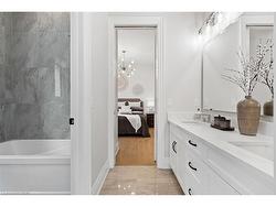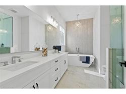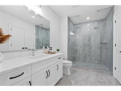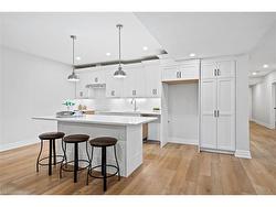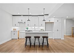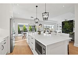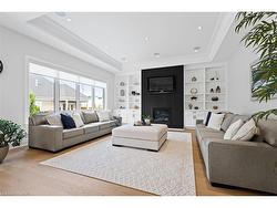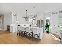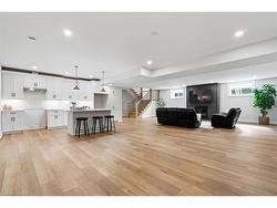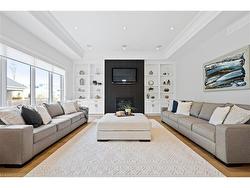 Discover low-maintenance luxury living in this beautifully designed bungalow, perfectly situated between Niagara-on-the-Lake's vineyards andthe amenities of Niagara Falls. This home offers the ideal blend of style, function, and comfort for today's modern buyer. Step inside to soaringceilings, elegant panel detailing. The chef-inspired kitchen features quartz countertops, custom built-in cabinetry, and a premium Thermador gasstove, perfect for entertaining. With 5 spacious bedrooms, a bonus room ideal for a home gym or office, and two full kitchens (including one inthe finished basement), the layout is ideal for multi-generational living or hosting guests. Relax by one of two gas fireplaces or enjoy theoutdoors on the covered patio. Notable Features: Engineered hardwood flooring throughout, Heated floors in all bathrooms, Motorized electricblinds, Second kitchen in basement, AC (2022), HVAC (2022), Roof (2022) In-ground sprinkler system, Double garage + driveway parking.Some photos have been virtually staged.