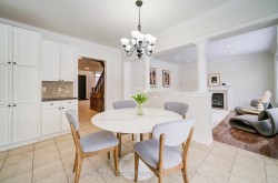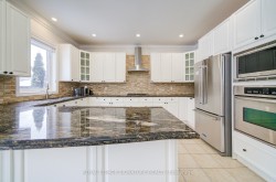Welcome to Oakville's prestigious Joshua Creek community, where convenience, luxury, and top-rated schools come together. This stunning Ballantry-built home sits on a premium deep lot with approximately 60' width across the rear, offering exceptional privacy and a professionally landscaped backyard with cobblestone-style patio, towering 28' Blue Spruce trees, maple, ornamental pear trees, and large cedars. Approximately 3,540 sq. ft. of luxurious living space features an upgraded fiberglass front entry door, hardwood flooring throughout the home, 9' main floor ceilings, crown mouldings, and a curved oak staircase. The main floor features a private office, a sunken formal living room with tapered columns, crown mouldings, and pot lights, and an elegant dining room with coffered ceiling and hardwood floors. The extensively upgraded and modified kitchen boasts maple cabinetry, extended-height upper cabinets, granite countertops, travertine backsplash, stainless steel appliances, a breakfast bar, and a walk-out to the breakfast area. The open-concept family room, anchored by a gas fireplace, completes this level, providing a perfect space for family gatherings and entertaining. The second floor features a spacious primary suite with a spa-inspired ensuite, including a luxurious soaker tub and a large walk-in closet. Three additional bedrooms include one with a private ensuite, providing comfort and convenience for family or guests. An exceptional home offering outstanding location, privacy and quality craftsmanship.