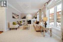 Stunning Rosehaven-built Freestone model located in the highly sought-after Lakeshore Woods community, offering an exceptional blend of luxury, space, & lifestyle steps from parks & minutes to Lake Ontario. A short six-minute drive to Bronte Harbour & vibrant Bronte Village with its boutique shops, restaurants, & ideal for commuters, with quick access to the QEW/403. This elegant home boasts outstanding curb appeal with a stucco facade, stone skirting, copper-clad roof detail, Palladian windows, & professional landscaping, including an updated (2023) patterned concrete walkway & double driveway with parking for 4 cars. The fully fenced backyard features a large deck with a gazebo & a stone lower patio, perfect for outdoor entertaining. Offering approximately 3,148 sq. ft. of refined living space plus a professionally finished basement (2023), the home includes 4 bedrooms, 4.5 bathrooms, & numerous updates such as a new furnace & heat pump, custom Palladian window blinds (2023), & refinished kitchen cabinetry (2025). The interior highlights 9 & 10-foot ceilings, hardwood floors, decorative columns, & an impressive oak staircase on the main floor, & deep crown mouldings throughout. The functional layout features a private living room, a formal dining room with a tray ceiling, an expansive family room with a gas fireplace, a bright eat-in kitchen with white cabinetry, under-cabinet lighting, an island, granite countertops, stainless steel appliances, & a walkout to the backyard. A main-floor library, powder room, & laundry with inside garage access add convenience. Upstairs offers 4 spacious bedrooms & 3 full bathrooms, including a luxurious primary suite with a 5-piece ensuite featuring a soaker tub & glass shower. The finished lower level (2023) includes a massive recreation room, wet bar with fridge & dishwasher, open-concept office area, & a full bathroom-perfect for entertaining, extended family, or work-from-home flexibility. (id:7525)