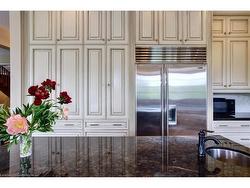 Crème de la crème! Rare find in Joshua Creek: 4,000 sq ft + fully finished walk-out basement backing onto ravine, pond & nature! Modern construction with high ceilings on all three levels.Fifteen spacious rooms + five bathrooms. Grand entrance with covered porch, front doors with wrought iron inserts and sidelites. Coffered ceilings in elegant foyer. Formal living room with vaulted ceilings, fireplace & oversized window. Expansive dining room lit by grand window with transom. Family room with serene ravine views & built in shleving. Massive kitchen w/centre island, two sinks, Wolf gas stove with indoor BBQ, intergrated Sub-Zero fridge, granite countertops, wine rack. Spacious Breakfast room w/walk-out to large a balcony overlooking pond. Large main floor office. Inside entry to garage. Ample storage.Second floor offers large open concept sitting room with fireplace & ravine views. Massive primary suite features coffered ceilings, private balcony with ravine views, walk-in closet + second closet, & luxurious 5-piece ensuite. Three additional spacious bedrooms, three full bathrooms & laundry room complete the upper level.Bright walk-out lower level includes media room, games room, exercise area - all with water views. Library, Cold Room, fifth bedroom with large bathroom & huge walk-in closet. Finished with limestone & hardwood floors throughout. Solid wood staircase. Pot lights, chandeliers.Walk to top-rated schools: Iroquois Ridge HS (ranked 12th/769 in Ontario), Joshua Creek P.S., St. Marguerite dYouville, Munns French Immersion, St. Andrew, Holy Trinity S.S. & Loyola S.S.with French Immersion. Nearby private schools include Rotherglen, Fern Hill & Walden Intl, Appleby College. Steps to trails, ravines, parks, bike paths & elite sports facilities: Ninth Line Sports Park, Oakville Tennis Club, Glenashton Park, Cricket Grounds. Close 2 Longos, Walmart, Canadian Tire & dining at The Keg, State & Main, Little Saigon.EZ access 2 Hwy 403, 407, QEW & Clarkson GO.