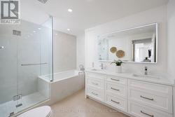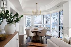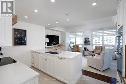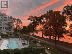 Paradise awaits at Bluwater Condos on Lake Ontario, offering true resort-style waterfront living with exceptional building amenities & unbeatable convenience. Ideally located just minutes from major highways, shopping, dining, & everyday essentials, this coveted community is steps to scenic parks & waterfront trails, with Bronte Harbour & Bronte Village-home to trendy boutiques, cafés, & restaurants-only a 4-minute drive away. This luxury renovated 2-bedroom, 2.5-bathroom condo spans approximately 1,550 sq. ft. & enjoys a premium position in the building, delivering breathtaking lake views, centre courtyard lounge, & plunge pool vistas from every window. Two private balconies provide a front-row seat to spectacular Lake Ontario sunsets. Refined craftsmanship & timeless style throughout, including engineered hardwood floors, crown mouldings, deep baseboards, 9' ceilings, wainscotting, & custom window coverings. Extensive 2025 renovations include the renovated kitchen, ensuite bathrooms, & laundry room, new high-end appliances, designer lighting, & a freshly painted interior, including ceilings, doors, & trim. The spacious formal living room & dining room offer floor-to-ceiling windows, remote-controlled blinds, & a walkout to the balcony-perfect for entertaining or quiet moments of serenity. The chef-inspired kitchen impresses with new custom cabinetry, quartz countertops, Miele appliances, & new flooring. The adjoining family room offers wall-to-wall custom cabinetry & expansive lake views. The primary retreat features its own lake-facing balcony & a luxuriously renovated 5-piece ensuite with a soaker tub & glass shower. Completing this exceptional offering is a second bedroom featuring a renovated 3-piece ensuite, a laundry room, a powder room, an underground storage locker, & two parking spaces. A rare opportunity for luxury condo living on the waterfront in one of Oakville's most desirable communities. (id:7525)
