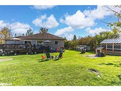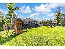 RAISED BUNGALOW WITH IN-LAW POTENTIAL ON NEARLY HALF AN ACRE WITH ATTACHED GARAGE & A LOFT! Nestled in a peaceful Hawkestone setting near Lake Simcoe, this charming raised bungalow captures the best of small-town living with quick access to Highway 11 and is approximately 15 minutes to both Barrie and Orillia. Spend your days by the water at the nearby Hawkestone dock, pavilion, boat launch, and Oro Beach, or explore scenic trails only a short walk away. The nearly half-acre lot offers ample outdoor enjoyment with a large deck, two sheds, a fire pit, a chicken coop, and a kids' playset. The front of the home showcases great curb appeal, featuring an interlock walkway and a welcoming covered porch. The open-concept main level features hardwood and tile flooring, timeless finishes, and a bright kitchen with wood cabinetry, a breakfast bar, pantry, and some stainless steel appliances, including a gas stove, with clear sightlines into the living and dining areas. A walkout from the dining room opens to the back deck, where mornings start with coffee in the fresh air and evenings end surrounded by the sounds of nature. The primary bedroom includes a 3-piece ensuite and two double closets, while the main floor laundry with a sink adds everyday practicality. The fully finished basement, featuring a separate entrance, offers in-law potential and includes a cozy rec room with a gas fireplace, built-in bookshelves, a fourth bedroom, and a full bathroom. The attached two-car garage includes a loft area that provides additional storage, and the home is equipped with an 11 kW Generac generator. A truly inviting #HomeToStay in a setting that's easy to fall in love with.