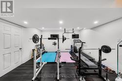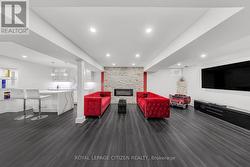 Welcome to 1882 Esterbrook Dr, Oshawa - a stunning 3,262 sq. ft. residence situated on a premium corner lot (55 x 114 ft), featuring a fully finished basement and over $150,000 in premium upgrades throughout. The main level offers 9-ft ceilings, elegant wainscoting and crown moulding, rich hrdwd flooring, and an extended chef's kitchen with quartz countertops, backsplash, double pantries, and seamless flow into the dining area-ideal for entertaining. A striking double oak staircase adds timeless elegance and architectural interest. The second level showcases an open-concept family room overlooking the grand 17-ft foyer with raised ceilings, a hardwood hallway, multiple walk-in closets, and a versatile attic loft suitable for a bedroom or flex space. All four bedrooms feature spacious private ensuites, providing exceptional comfort and privacy.The fully finished basement is a true showstopper, complete with a bedroom, full washroom, gym, entertainment area, and a stylish bar with granite waterfall countertops. Additional highlights include glass railings, luxury vinyl flooring, a dramatic stone feature wall with an electric fireplace, and over 50 professionally installed pot lights throughout the interior and exterior, enhancing both ambiance and functionality. The outdoor space is equally impressive, offering a Hunter sprinkler system, interlocked driveway, and a two-level deck with built-in bench seating and gazebo, perfect for outdoor living and entertaining. One year of free lawn maintenance is included for added convenience. Additional features include garage access through the laundry room and a prime location close to schools, parks, recreation centres, shopping, and Hwy 407. (id:7525)