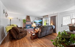 The one you have been waiting for - a beautiful brick bungalow, on a large, landscaped lot, with attached garage, private rear patio and detached workshop. This great home is move-in ready and offers spacious rooms on one-level living. The bright front living room features a gas fireplace, large picture window and wide hall. There is a large eat-in kitchen with centre island, ample cabinets, pantry and sliding walkout door to rear patio. A separate main floor den/family room offers endless possibilities as media room, hobby room or home office. The home has 3 bedrooms, all with closets and broadloom flooring. Modern 3 piece bathroom features tile and glass shower with corner seat and storage options. There is a main floor laundry room with side walkout to yard and garage access. The home has a lower level utility room, perfect for additional storage and off-season items. The extra height in garage allows for a walkup mezzanine for even more storage. An added bonus is the rear 12' x 20 ' finished & heated workshop - it's insulated and features hydro, overhead door, concrete floor - a great work space or escape! Enjoy a beautiful yard with mature trees, gardens and firepit area. Natural gas outlet at deck and at front garage for BBQ. The home has been very well maintained and offers updated windows, leaf guards on gutters, gas furnace approx 6 yrs old.