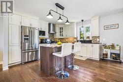 Welcome to this 2015 Parkview-built bungalow featuring four bedrooms and three bathrooms. The open-concept main level offers a bright and functional layout with living, dining, and kitchen areas seamlessly connected. The kitchen is highlighted by granite countertops, a center island, and a built-in double-door dishwasher. French doors lead from the dining area to the back deck, complete with a natural gas hookup for barbecues and outdoor entertaining. Engineered hardwood flooring runs throughout the main level. The spacious primary bedroom includes an oversized closet and is served by a beautifully appointed 4-piece bath with stand-up shower, soaker tub, and vanity. A 2-piece bath and convenient main floor laundry complete this level. The fully finished basement provides excellent additional living space with a large rec room featuring laminate flooring and a natural gas fireplace with thermostat. Two additional bedrooms, a 3-piece bath with shower, a workshop, and utility room offer plenty of versatility and function for family or guests. Outside, enjoy a detached single-car garage with attached 8 garden shed, a fully fenced backyard, paved driveway, and ample parking. This well-maintained home is move-in ready and offers comfort, style, and space inside and out. Only 35 min drive to the west end of Ottawa and 40 mins to Barrhaven. (id:27)
