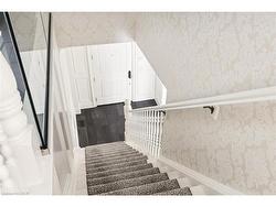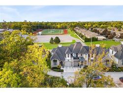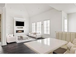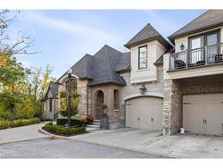 Welcome home to the prestigious 25 Arbourvale Commons, an exquisite townhome in St. Catharines' exclusive Southend. This luxurious custom-built residence seamlessly blends sophistication and comfort. As you arrive, the grand stone facade and elegant European-inspired design create a striking first impression. Inside, the open-concept living area features soaring 20-foot ceilings, large windows with automated blinds, and a sleek fireplace. The gourmet kitchen is a culinary dream, boasting a quartz island, built-in breakfast nook, and high-end appliances. The main-floor primary suite offers a spacious walk-in closet and a lavish 4-piece ensuite. Upstairs, you'll find a guest bedroom, a beautifully finished full bathroom, and an office space that can easily be converted into a bedroom if desired. The finished basement provides versatile living.