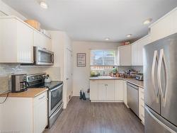 Updated 3 Bedroom, 2 Bathroom home in the heart of St. Catharines. Enter inside past the covered front porch and you will be greeted by an open and spacious living area which flows smoothly into the kitchen and dining room. Extending beyond the kitchen is a bonus room, which can be utilized as an additional living room or a main floor primary bedroom, which features sliding doors that exit out onto the patio. The solid wood staircase with iron spindles will lead you upstairs to where there are 3 well-proportioned bedrooms and a full bathroom. The backyard is oversized, with tons of room for outdoor activities and mature trees that has immense privacy from neighboring homes. The property is situated within walking distance to parks and just a short drive to the highway as well as all of the amenities one could need or ask for! Come tour this lovely home today.