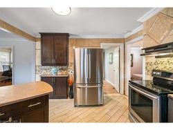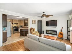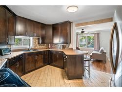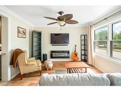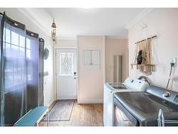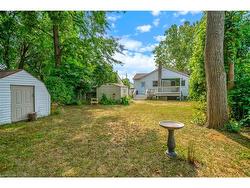 Fantastic detached bungalow located in central St. Catharines offering over 1,000 sqft. of comfortable main floor living. This well maintained home features three bedrooms and a spacious five-piece bathroom. A newer asphalt driveway accommodates 2+ vehicles. Inside, the open-concept layout includes a bright living room with electric fireplace, seamlessly mounted T.V. and sound bar. A modern kitchen with a breakfast bar and stainless steel appliances is a great touch to the space. Just off the living room, you'll find a versatile bedroom currently used as a home office. At the rear of the home, the large primary bedroom offers double closets, while the third bedroom is also generously sized. The large laundry room, with direct access to the backyard and the driveway, sits alongside the five-piece bathroom. While there is no full-height basement, a separate staircase in the laundry room leads to a utility area with 5 ft ceilings making it ideal for storage and housing the furnace and mechanicals. The fully fenced backyard is a true highlight, featuring a freshly painted deck with pergola, spacious lawn, fire pit and two garden sheds. Conveniently located close to shopping, schools, and highway access, this property delivers excellent value and convenience.