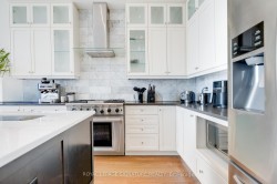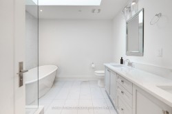 Welcome To This Exceptional Two-Storey Detached Residence In The Coveted Etobicoke-Mimico Neighbourhood. Custom-Built And Impeccably Maintained, This Home Blends Architectural Detail With Thoughtful Functionality Across Every Level. The Main Floor Showcases A Bright, Expansive Living And Dining Area, Anchored By A Statement Floating-Style Open-Riser Staircase With Wood Treads And Sleek Glass Detailing, Creating A Dramatic Yet Timeless Design Moment. At The Heart Of The Home, The Gourmet Kitchen Impresses With Soaring 12-Ft Ceilings, Illuminated Cabinetry, Premium Quartz Countertops, A Large Centre Island, And Stainless Steel Appliances. The Adjacent Family Room Continues The Sense Of Scale With Matching 12-FtCeilings, A Fireplace, And Direct Access To The Deck And Professionally Landscaped Backyard. The Upper Level Offers Three Well-Proportioned Bedrooms With 9-Foot Tray Ceilings, Enhanced By Abundant Natural Light From Skylights And Contemporary Glass Railings. With Four Bathrooms In Total, Including Three Full Baths And A Main-Floor Powder Room, The Home Is Well Suited For Both Family Living And Entertaining. The Lower Level Features 9-FootCeilings And A Walk-Up To The Backyard, Offering Flexible Space For Recreation Or Extended Living. The Basement Is Also Roughed In For Radiant Floor Heating. Refined Finishes Include 9.5" Baseboards, 4.5" Poplar Backbend Casing, Hardwood, Marble, And Porcelain Flooring, Generous Storage, An Integrated Security Camera System, And A Built-In Garage. Located In One Of Toronto's Most Desirable Waterfront Communities, This Is A Rare Opportunity To Own A Truly Turn-Key Home
