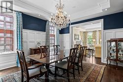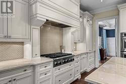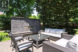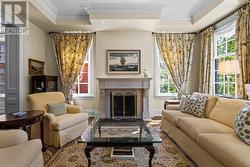 Tucked away in Lawrence Park, 260 St Leonard's Avenue is a Georgian-inspired home blending classic architecture with a touch of modern style across 6,000 square feet and three levels. Inside, the atmosphere is welcoming and bright, with sunlight pouring through the foyer and highlighting custom millwork. There's a private office for focused work, and the living room, anchored by a wood-burning fireplace, is made for cozy evenings. The dining room features stained glass windows and custom wainscotting and overlooks the living room. At the heart of the home is the kitchen: a marble-topped island, custom cabinetry, and high-end appliances. Sunlight fills the breakfast nook, while the family room, complete with a gas fireplace and a wall of windows blends seamlessly with the outdoors. French doors lead to a deck perfect for barbecues, with a stone patio and gas fireplace surrounded by gardens for total privacy. This backyard is made for gatherings, alfresco dinners, and unforgettable summer nights. Practical spaces get equal attention: a designer powder room, main-floor laundry with built-in storage, and a bar area for entertaining complete the main floor. Upstairs, the primary suite is a true retreat with vaulted ceilings, a custom dressing room, and a spa-like ensuite featuring a waterfall shower and dual marble vanities. Three additional bedrooms are sunlit and spacious, each with custom double closets. The lower level is designed for fun; think recreation room with fireplace, gym, guest/nanny suite with ensuite bath, flex space, access to the garage, and a climate-controlled wine cellar. The location is unbeatable: tree-lined St. Leonards Avenue offers easy access to trails, top private schools, and the Granite Club. This is a home that balances sophistication with everyday comfort and room to grow. (id:7525)