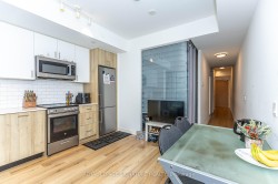 Welcome to The Tailor at Queensway Residences! a modern and thoughtfully designed 1+Den, 1-bathsuite offering style, comfort, and everyday functionality. This bright, open-concept home features contemporary finishes, premium flooring, and a seamless flow between the kitchen, living, and dining areas, ideal for both relaxing and entertaining. The sleek kitchen is equipped with modern appliances and ample cabinetry, while the versatile den provides the perfect space for a home office, guest area, or additional living space. Step out onto your private balcony and enjoy northeast-facing views, bringing in beautiful natural light throughout the day. Includes a locker for added storage convenience. Residents enjoy access to excellent building amenities including a fitness centre, rooftop terrace, party room, and 24-hour concierge. Ideally located minutes from shopping, dining, transit, parks, and major highways, this is a fantastic opportunity for first-time buyers, downsizers, or investors alike. A stylish home in a well-connected community - don't miss it!