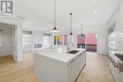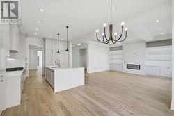 Stunning Vogue Homes inventory model tucked on a quiet child-safe court in the prestigious Thornhill Woods community. Approx. 4,485 sq.ft. of total finished living space (as per builder's plan), showcasing impeccable craftsmanship, upscale finishes, & thoughtful design including 5" hardwood floors & 12" x 24" tile floors throughout main & 2nd levels, 7 1/2" baseboards & 3 1/2" casement trim package, 10ft smooth ceilings on main floor with 8ft interior shaker style doors, 9ft smooth ceilings on second floor & 9ft smooth ceilings on walkout basement level. Upgraded light fixtures plus pot lights, Open oak staircase with iron pickets from basement to 2nd floor, crown moulding, coffered ceilings, & more! The main floor features principal rooms that include a gourmet kitchen with upgraded cabinetry, matching stone counters and backsplash, soft closing doors & drawers, built-in 6 burner gas cooktop, built-in oven/microwave combo, built in panelled fridge & panelled dishwasher, pull out recycle station & large centre island with breakfast bar. The open concept layout combines the kitchen with a large breakfast area with additional storage space in the form of an approx. 11ft long built-in cabinet with doors & open display shelves. The family room features coffered ceilings with crown moulding, a floor to ceiling focal fireplace wall with built-in display cabinets on either side, dining room with coffered ceilings & crown moulding, and Den with waffled ceilings and crown moulding. The second floor has 4 practical size bedrooms (each with private ensuite with granite counters & undermount sinks) + media room that could serve other purposes, and full size laundry room. Primary bedroom features large walk-in closet and 5pc ensuite with free-standing tub, double sink vanity & frameless clear glass shower. Finished walkout basement has a considerable sized 27ft x 16ft recreation room, plus a 4pc bathroom. Temporary partition wall inside garage will be removed prior to clo (id:7525)