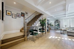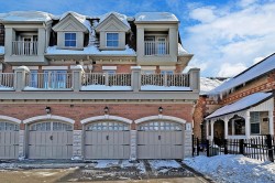 This stunning builders model townhome is a spacious corner unit with a 2-car garage, offering a stylish and functional design with custom upgrades throughout. Located just steps from parks, shopping, the GO Station, Vaughans hospital, a community centre, and a library, this home provides both convenience and modern elegance. Step inside to discover a bright, open-concept family room, with wall-to-wall windows and featuring a custom fireplace accent wall. The elegant dining area is enhanced with coffered ceilings, while the gourmet kitchen boasts quartz countertops, stainless steel appliances, a chic backsplash, a breakfast bar, an eat-in area, and a walkout to a private balcony. With three bedrooms and four upgraded bathrooms, this home is designed for comfort and style. The formal living room offers versatility and can easily function as aguest suite on the ground level or additional entertainment space. Hardwood floors span three levels, complemented by 9-ft ceilings on the main floor, crown mouldings, pot lights, smooth ceilings, and designer lighting. Thoughtful custom-built closet organizers, window coverings, and stylish built-ins add both elegance and practicality. The fully finished basement extends the living space with an open-concept recreation room and a spa-like 3-piece bathroom.