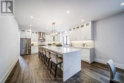 Step into this exceptional detached raised bungalow, where modern luxury meets effortless everyday living. Offering over 3,300 sq. ft. of beautifully finished space, this home is crafted to impress from top to bottom. The main floor features three generously sized bedrooms and two spa-inspired 3-piece bathrooms, each adorned with elegant porcelain tile. The heart of the home is the open-concept kitchen and dining area, showcasing custom quartz countertops, a striking waterfall island, and premium stainless steel appliances-perfect for both cooking and entertaining. Bright and inviting, the living room is enhanced by a soaring cathedral ceiling and opens onto a large covered composite deck with modern glass railings, creating an ideal indoor-outdoor retreat. A thoughtfully designed main-floor laundry room with a built-in pantry adds convenience without compromising style. The fully finished lower level provides outstanding extra living space, complete with three spacious bedrooms with above-grade windows, a chic 3-piece bathroom, and a large kitchenette featuring custom quartz counters. The expansive dining and family area is perfect for hosting gatherings or creating a private suite for extended family. Move-in ready and loaded with high-end finishes and carefully selected upgrades, this home is a rare find that truly must be seen to be appreciated. (id:7525)