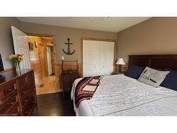 Located in the popular Lakes of Wasaga resort community, this charming year-round home offers 856 square feet of living space, including a bright two-season sunroom. The community provides a resort lifestyle with access to tennis courts, mini golf, pools, and children’s play areas. Inside, the home features two bedrooms and a three-piece bathroom with a newly updated sink backsplash. The spare room includes a built-in Murphy bed and desk, providing a flexible option for guests or a home office. The open-concept living room, dining room, and kitchen showcase cathedral pine ceilings and walls, creating a warm, inviting atmosphere. Convenience is enhanced with a stacked washer and dryer. Additional highlights include an in-ground irrigation system, generous-sized shed, and freshly stained front and back decks as well as the sunroom floor. A new AC unit was installed in May 2025. The backyard features a fire pit, perfect for relaxing evenings. The home also offers a four-foot crawl space with ample storage, housing the furnace and hot water heater. A paved driveway provides parking for three vehicles. From here, it’s just a short walk along two dedicated paths to New Wasaga Beach. Monthly fee of $772.01 (on leased land) includes property taxes, lease fee, maintenance.