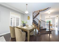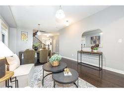 Stunning 4-bedroom, 4-bathroom 2,575 sq. ft. home in highly sought-after East Waterdown. Designed with modern living in mind, this residence boasts a bright open-concept layout filled with natural light, soaring 9-foot ceilings, and elegant oak hardwood floors and tiles throughout, a completely carpet-free home. Main foyer opens into the huge living/dining area. Spacious mud-room with custom built-in closet and access to garage, me large eat in kichen reatures uparaded cadineury ana premium stainiess steel apprances peried lor dou everyady medis ani entertaining. Upstairs, you'll find spacious 4 bedrooms and three bathrooms and three baths including two with their own ensuites, including a luxurious 5-piece retreat and a stylish 4-piece washroom. The large backyard offers plenty of space for family gatherings, gardening, or simply relaxing outdoors. Ideally located close to top-rated schools, scenic hiking trails, and beautiful parks, this home blends comfort, style, and convenience in one exceptional package. The following updates were completed in 2019: Backyard Deck, Front Yard, Kitchen, Bathrooms, Hardwood on Second Floor, Second Floor Built-In Closets, Built-In Shelves on First floor and in-Basement Lighting.