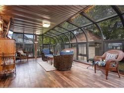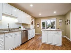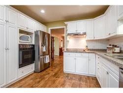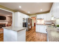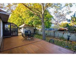 This beautifully maintained 1931 sq. ft. brick bungalow offers comfortable single-level living with the bonus of a fully finished basement, perfect for extended family or guests. Situated on a low-maintenance lot, this home combines practicality with inviting spaces inside and out. The main floor features a front living room, formal dining area, and a large family room with a gas fireplace. The spacious eat-in kitchen opens to an enclosed three-season sunroom (an additional 258 sqft of space) and composite deck, ideal for relaxing or entertaining. The primary bedroom fits a king-sized suite and includes a walk-in closet and 3-piece ensuite. A second bedroom, full bath, and main-floor laundry/mudroom with pantry complete this level. Downstairs, you'll find a rec room, games area, two bedrooms plus a den or home office, a 3-piece bath, and plenty of storage, along with an unfinished workshop area in the utility room. The fully fenced backyard features a powered shed and easy-care landscaping. Perfect for those seeking main-floor living with extra room to gather, this home offers space, comfort, and versatility in a desirable setting.