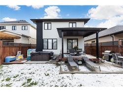 Experience refined elegance and modern comfort in this luxurious two-storey masterpiece. Built in 2019, this impeccably designed home offers 3+1 bedrooms, 3.5 bathrooms, and a fully finished basement - crafted with high end finishes and attention to detail throughout. Step inside to find engineered hardwood flooring throughout, a gourmet kitchen with sleek quartz countertops, premium stainless steel appliances, a walk-in pantry, and a large island - an entertainer’s dream. Retreat upstairs to your private primary bedroom, featuring its own spa room with a soaker tub, three closets, and a beautiful ensuite with double vanities. Also upstairs are two additional bedrooms, a laundry area, a beautiful 4-piece bathroom, and a spacious loft - ideal for a workout area, reading nook, or home office space. Outside, enjoy a triple-wide concrete driveway with parking for six vehicles, plus your own backyard oasis complete with a hot tub and covered patio area.All major systems (furnace, A/C, shingles, etc.) are just six years new, allowing peace of mind for many years to come. Located a stone’s throw to a large greenspace with a playground and a short drive to all amenities. This exceptional property blends sophistication, comfort, and lifestyle all in one remarkable package.
